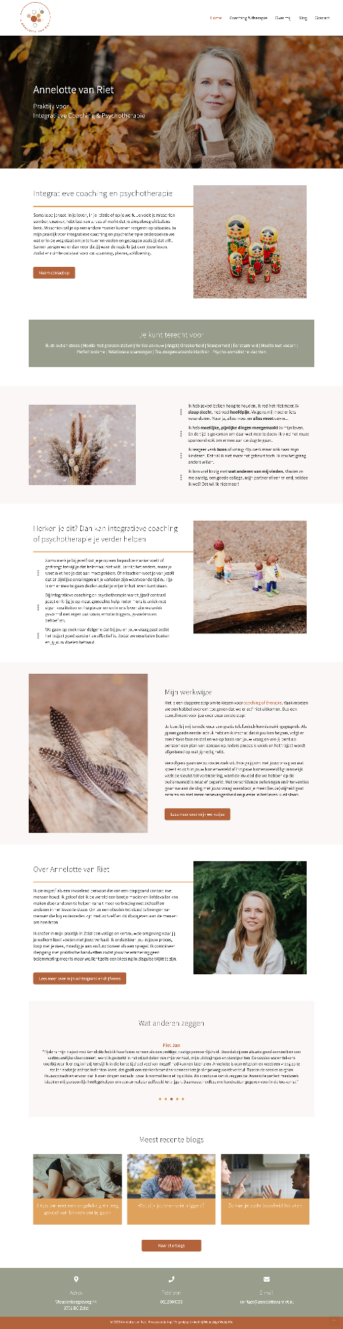 Uniek ontwerp van de homepage (op basis van jouw bestaande logo en nieuwe kleuren) die geldt als leidraad voor de rest van de website, gemaakt door Roselind, de branding specialist van Webjuffie®.