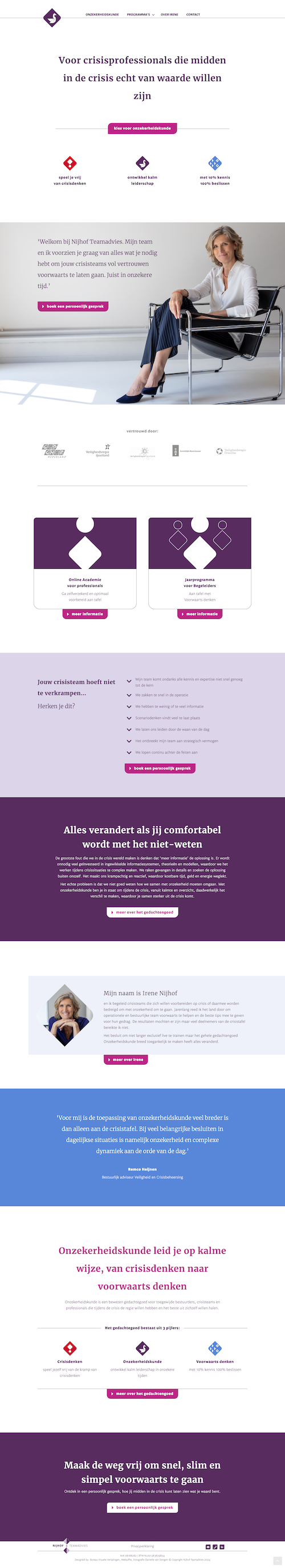 Uniek ontwerp van de homepage die geldt als leidraad voor de rest van de website, gemaakt door Roselind, de branding specialist van Webjuffie®.
